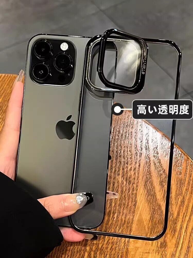透明 iPhone15 Pro Maxケースメンズ向け iPhone15 Proケース 高級感 アイフォン15カバー 黄ばまない iPhone14 13 12ケース スタンド付き★