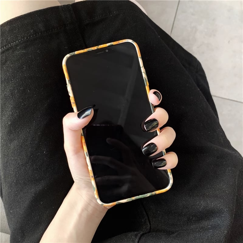 おしゃれで可愛いオレンジの花柄が特徴のアイフォンケースです。