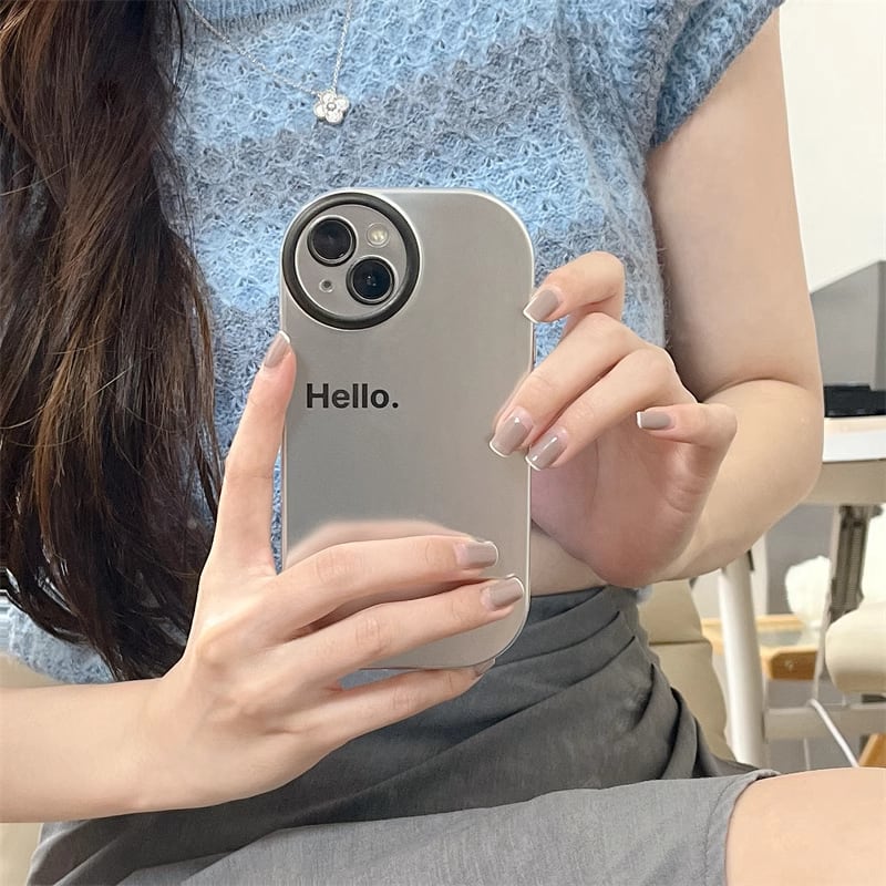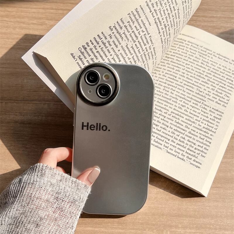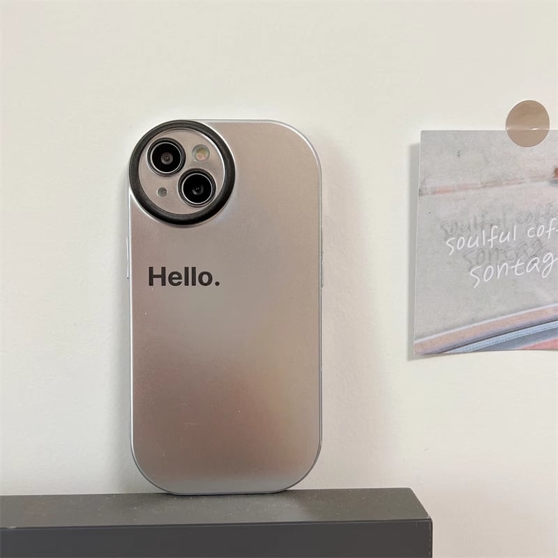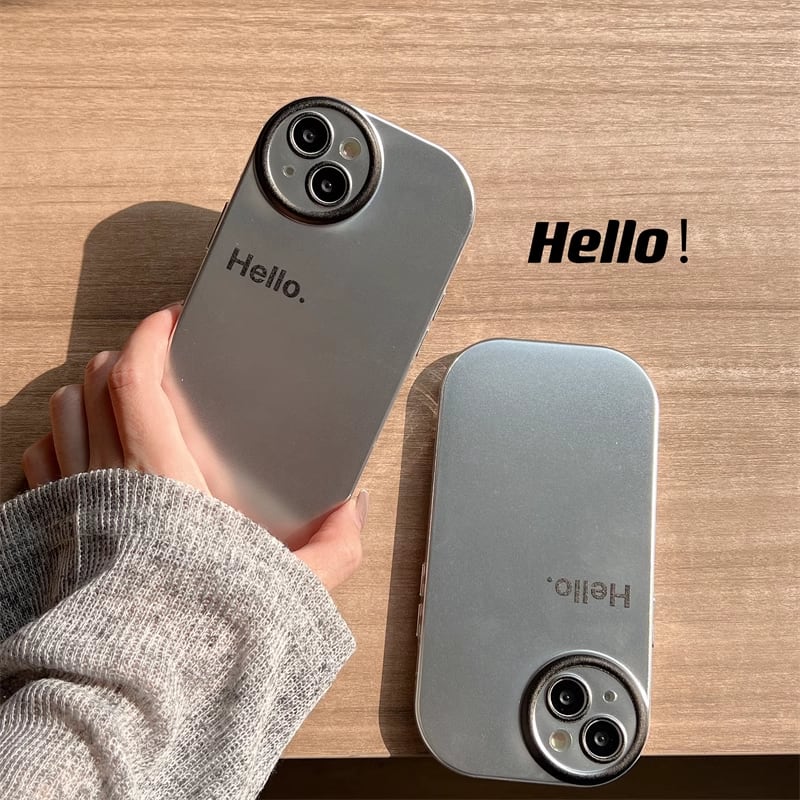 iPhone15 Pro Maxケース Hello 英文字 iPhone15 Proケース メタリック さらさら アイフォン15カバー シンプル 金属カラー iPhone14 13 12ケース メッキデザイン★