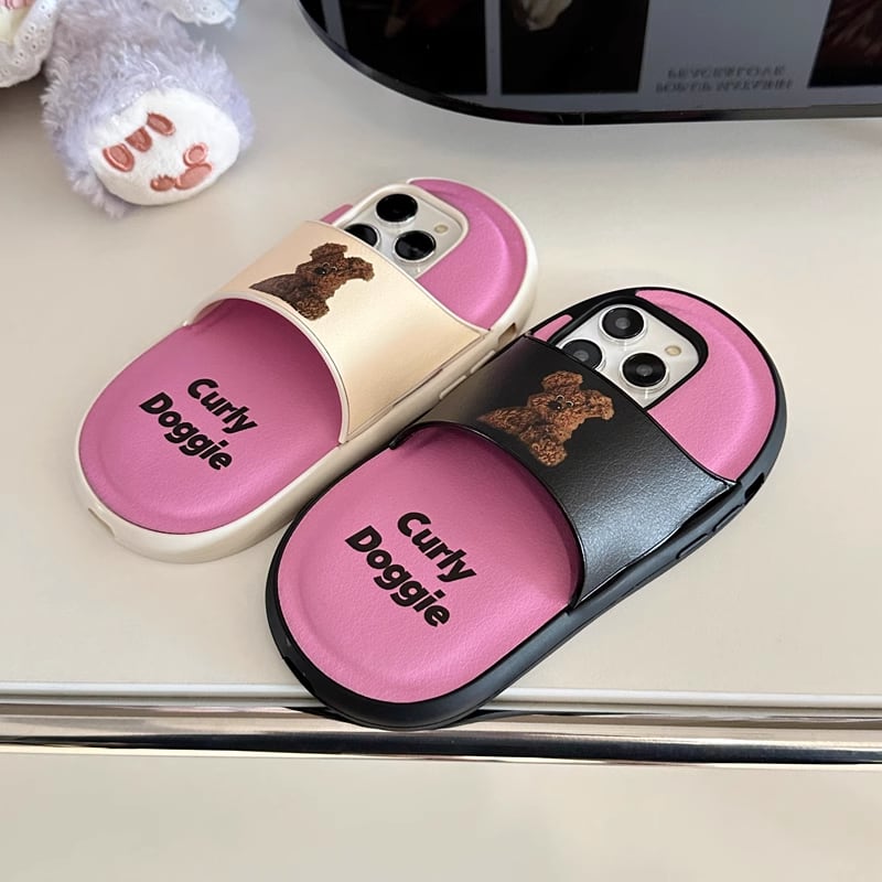 iPhone15 Pro Maxケース スリッパ模様 個性的 iPhone15 Proケース 可愛い 犬柄 iPhone15カバー ピンク 女子向け iPhone14 13 12Pro Maxケース 注目を引くデザイン◎