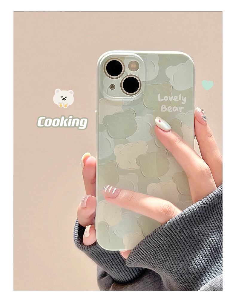 iPhone15 Pro Maxケース 油絵風 熊柄 iPhone15 Proケース かわいい グリーン iPhone15保護ケース シンプル バステルカラー iPhone14 13 12 11ケース 耐衝撃 ソフトケース◎