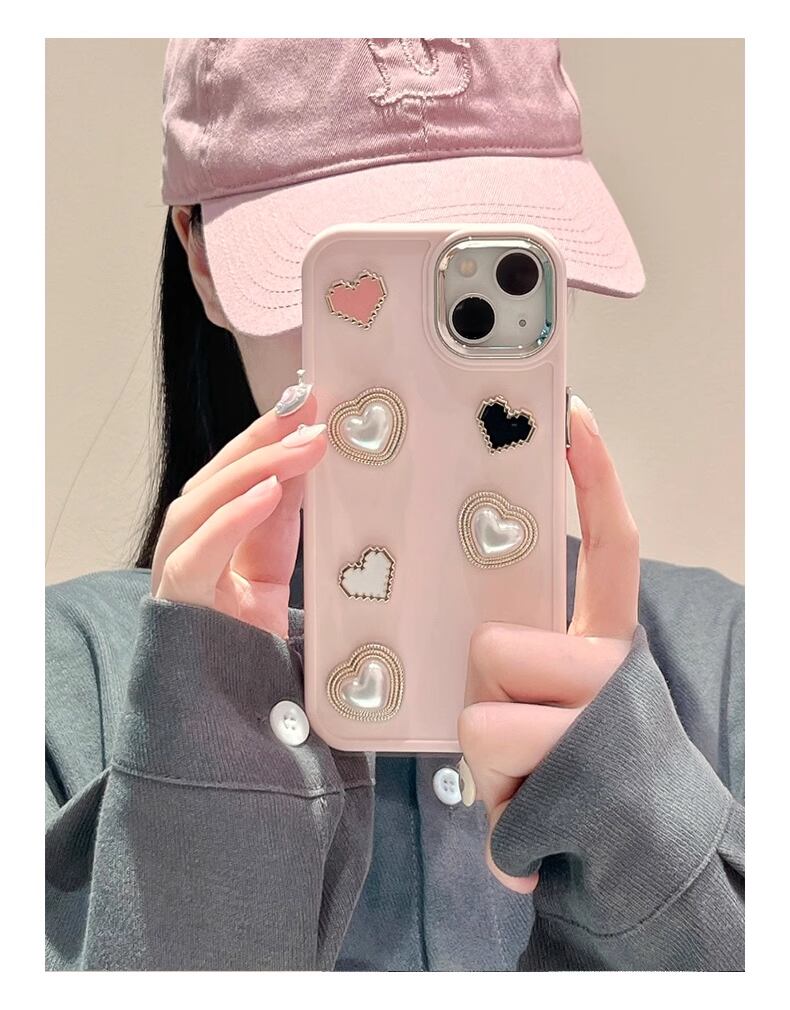 可愛らしい立体ハートのビジュー風が目を惹くiPhoneケース。