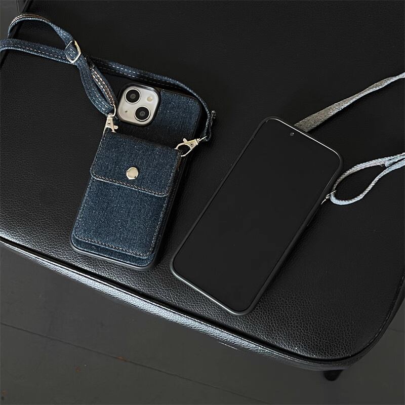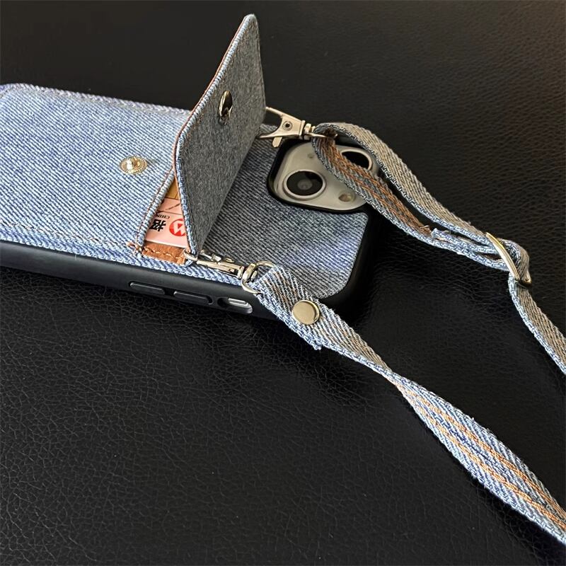 iPhone16 Pro Maxケース デニム オシャレ iPhone16 Proケースショルダー 斜め掛け iPhone15カバー カードポケット付き 便利 iPhone14 Pro Maxケース ファッション ワンポイント iPhone13 Proケース 肩掛け 可愛い◎