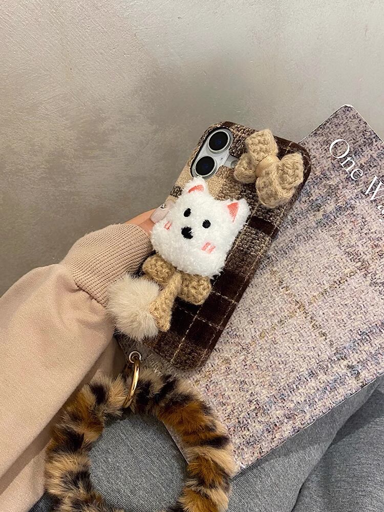 チェック柄の和風デザインがカジュアルなスタイルを醸し出し、立体的なもふもふの質感が、持つ人の心をほっこりとさせます。